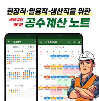 공수계산노트 - 월급계산급여계산근무일지 Android 13.0 veya üstünde çalışır. Uygulamanın mevcut sürümü 2.5.5'tir ve sadece Korece olarak çalıştırabilirsiniz.